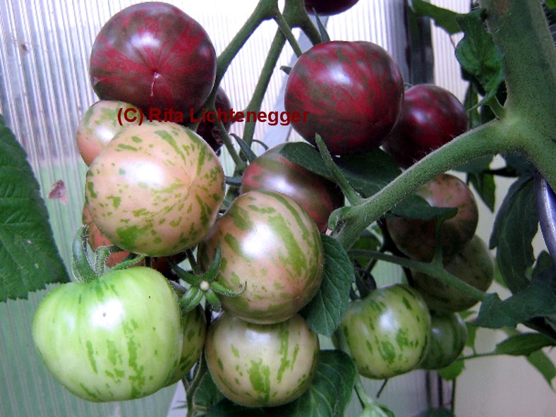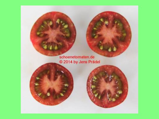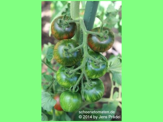 reife Anfang Juli im Gewächshaus, sehr gesunde und hochwachsende Pflanze, Früchte bei überreife etwas mehlig.