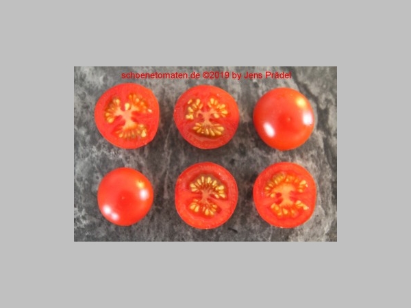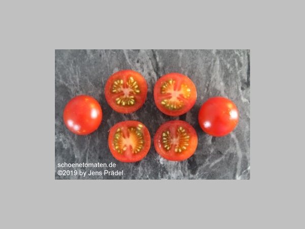 Reichtragende Kirschtomate, die leckere, unheimlich süße Früchte ausbildet. Getrocknet werden sie noch aromatischer und sind einfach lecker. Die Ernte erstreckt sich über einen langen Zeitraum. Die Pflanzen der russischen Sorte sind sehr wüchsig und werden hoch (durchaus 3m möglich).