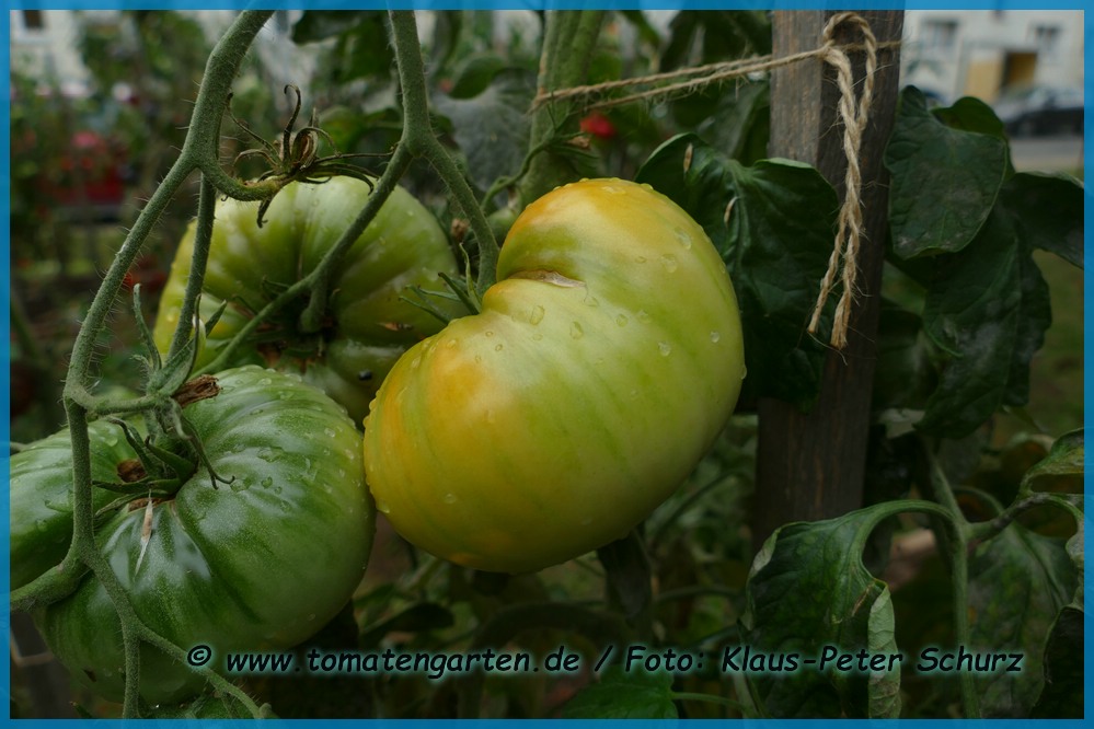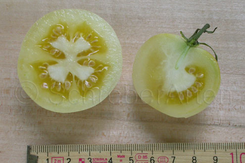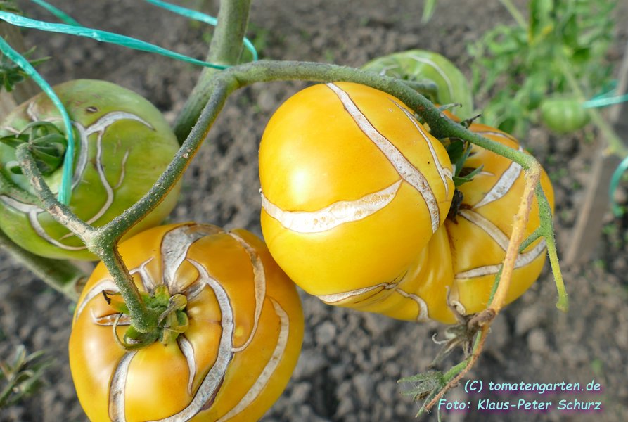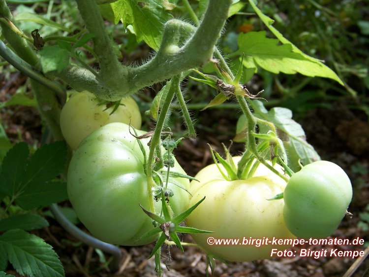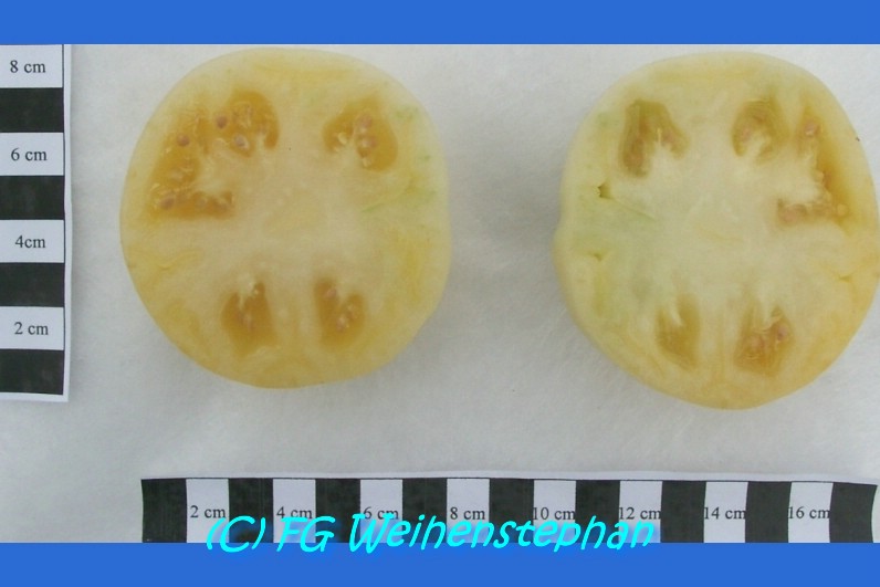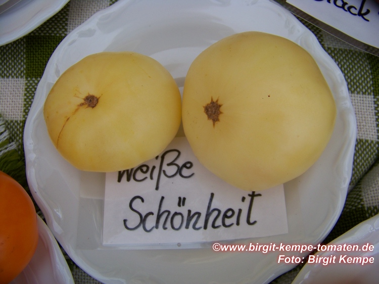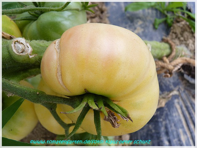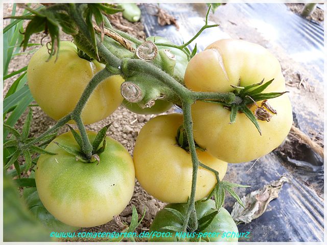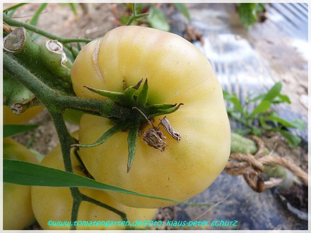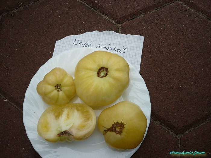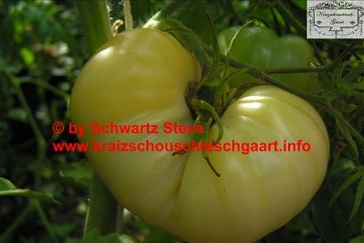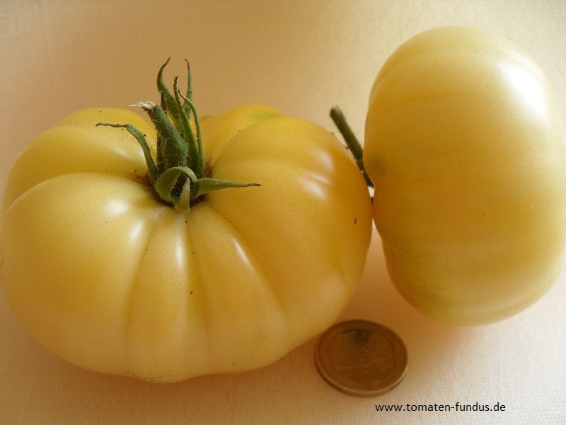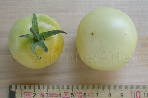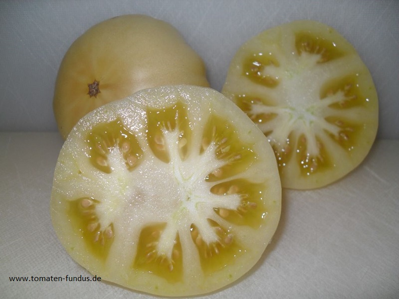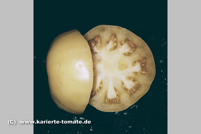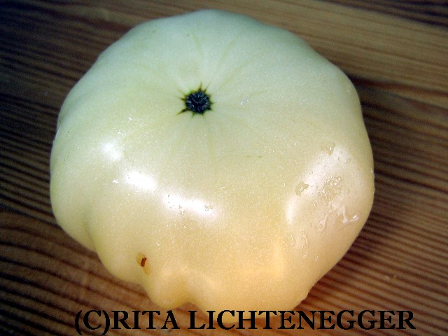 Eine hervorragend mild und süßlich schmeckende, cremefarbene, leicht ins gelb gehende, etwa 200 g schwere Tomate, die bei uns bevorzugt als Brotzeittomate Verwendung findet.