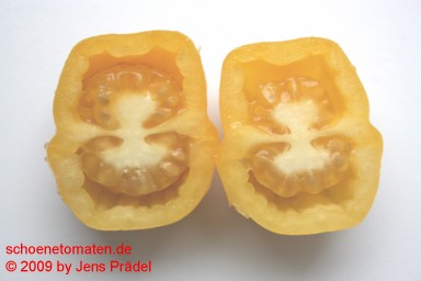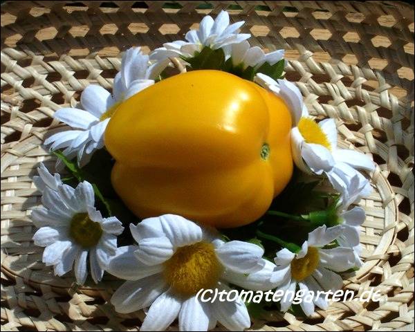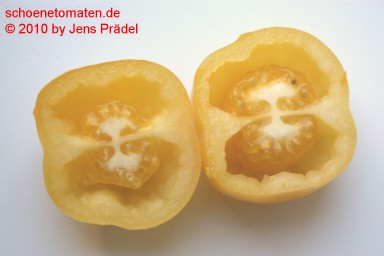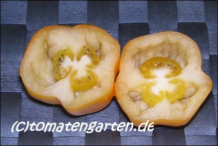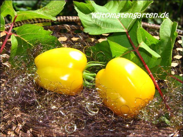 kleine bis mittelgroße, paprikaförmige, hohle, gelbe Früchte
