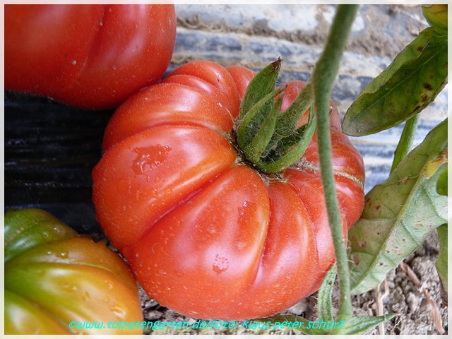 Zakopane - sehr große Pflanze (bis 2,5 m) später Erntebeginn (Mitte August) mittlerer Ertrag mittelgroße, flache, stark gerippte, rote Früchte teilweise "unregelmäßig" geformt sehr würzig, für Soßen (Quelle: www.schoenetomaten.de)