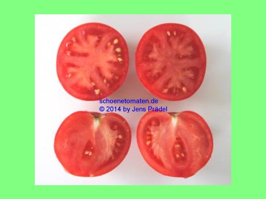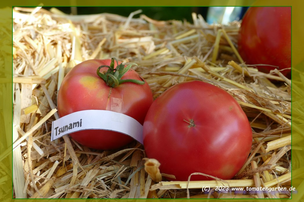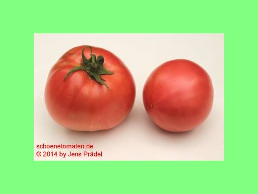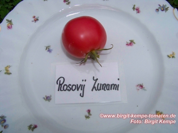 Die Sorte könnte identisch sein mit der, die mir eine ex-Kollegin aus Russland mitgebracht hat. Sie hat den Namen auf der Verpackung übersetzt mit Rosovij Zunami. Verpackung habe ich hochgeladen. Mit Sicherheit ist das ein oder andere Forum-Mitglieder der russischen Sprache mächtig und könnte dies bestätigen. Von der Fruchtfarbe rosa-hellrot passt es. Die Früchte sind ca. 150-200g schwer. Sie schmecken sehr tomatig, haben aber auch viel Säure. Sehr ertragreiche, aber auch hoch wachsende Pflanze: bei mir im Kübel um 2,50m.
